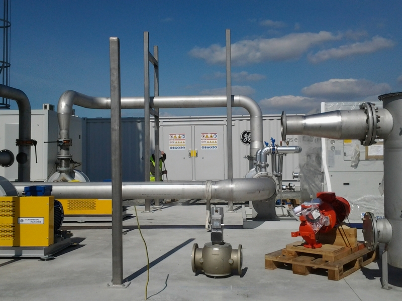 ETCM a effectué le raccordement du groupe de refroidissement des deux groupes électrogènes et du biogaz. De la fabrication sur plans en atelier, à la mise en place des raccordements sur site, l’installation de la centrale biogaz a nécessité deux mois d’intervention sur le site de la SITA.